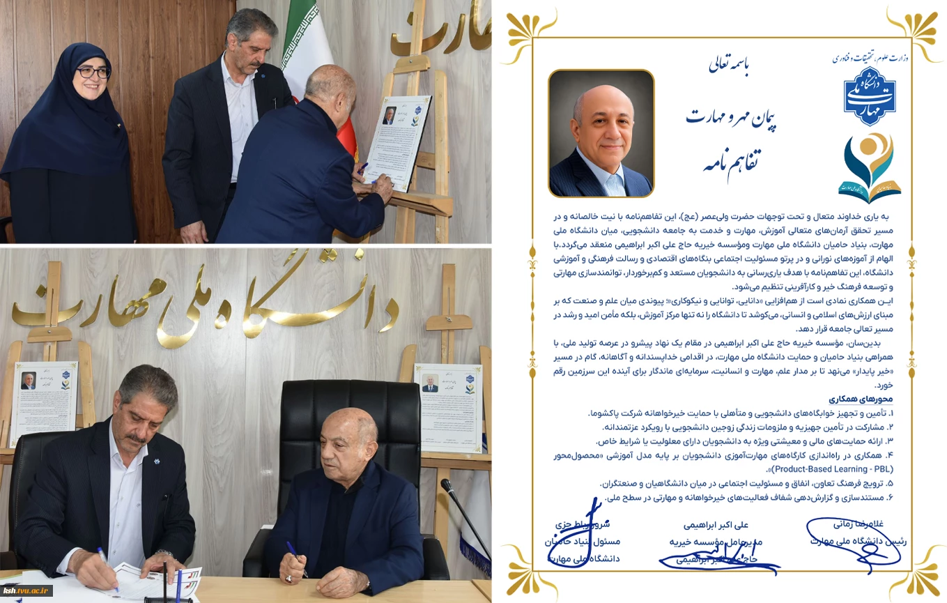 امتیاز دهید : به همت بنیاد حامیان دانشگاه صورت گرفت؛ امضای تفاهمنامه همکاری مشترک در دانشگاه ملی مهارت 2 یکشنبه 18 آبان 1404 ساعت 9:26
