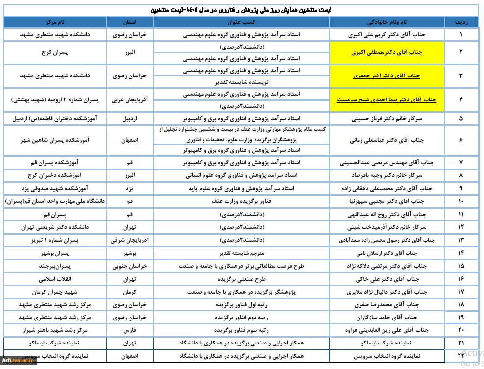 تجلیل از سرآمدان پژوهش و فناوری دانشگاه ملی مهارت در همایش گرامی‌داشت هفته ملی پژوهش و فناوری 2